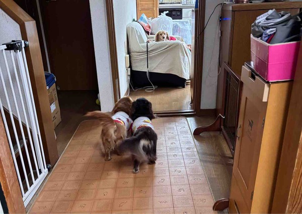 雨の日曜日。ぐりコロが絡まりながら家中を歩き回ってます。それを呆れ顔で見守るモコ。つまんないな雨の日曜日。そこどいて。ママのゴロ寝ポジやし。···